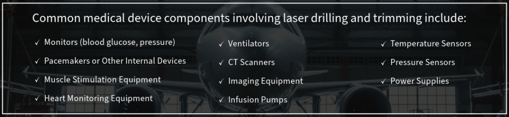 Precision, accuracy and repeatability are critical in medical devices, components often undergo laser trimming and drilling to meet these requirements.
