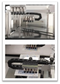 Systems contain two pickup heads, one for loading and one for unloading substrates. These substrate stacks (load and unload) are located at the front of the machine for easy access and exchange.