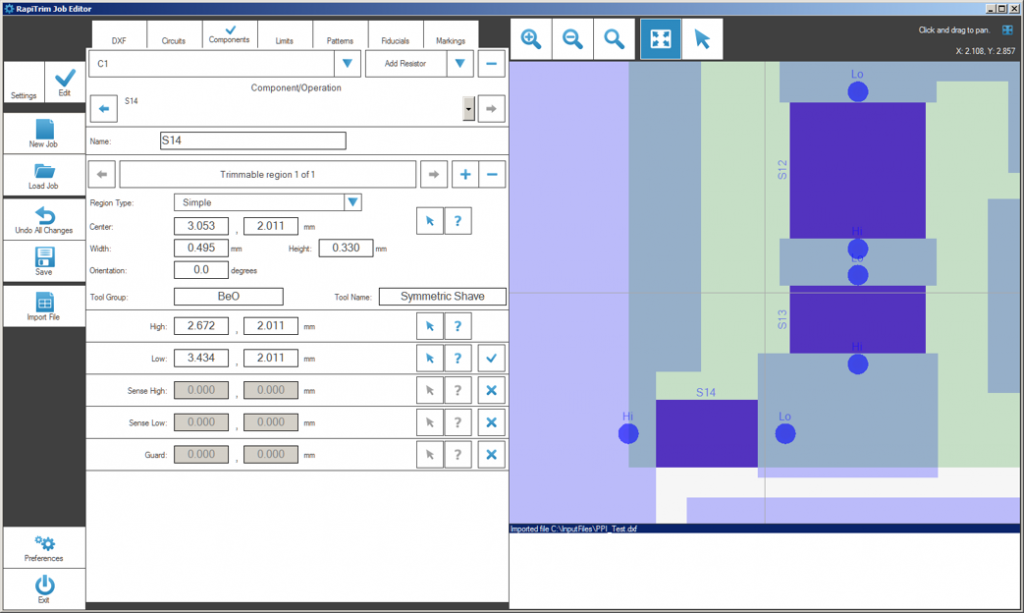 Interactive graphical process library with no programming required. Trim and measurement tools can be shared by resistors of different sizes and orientations, minimizing setup steps.
